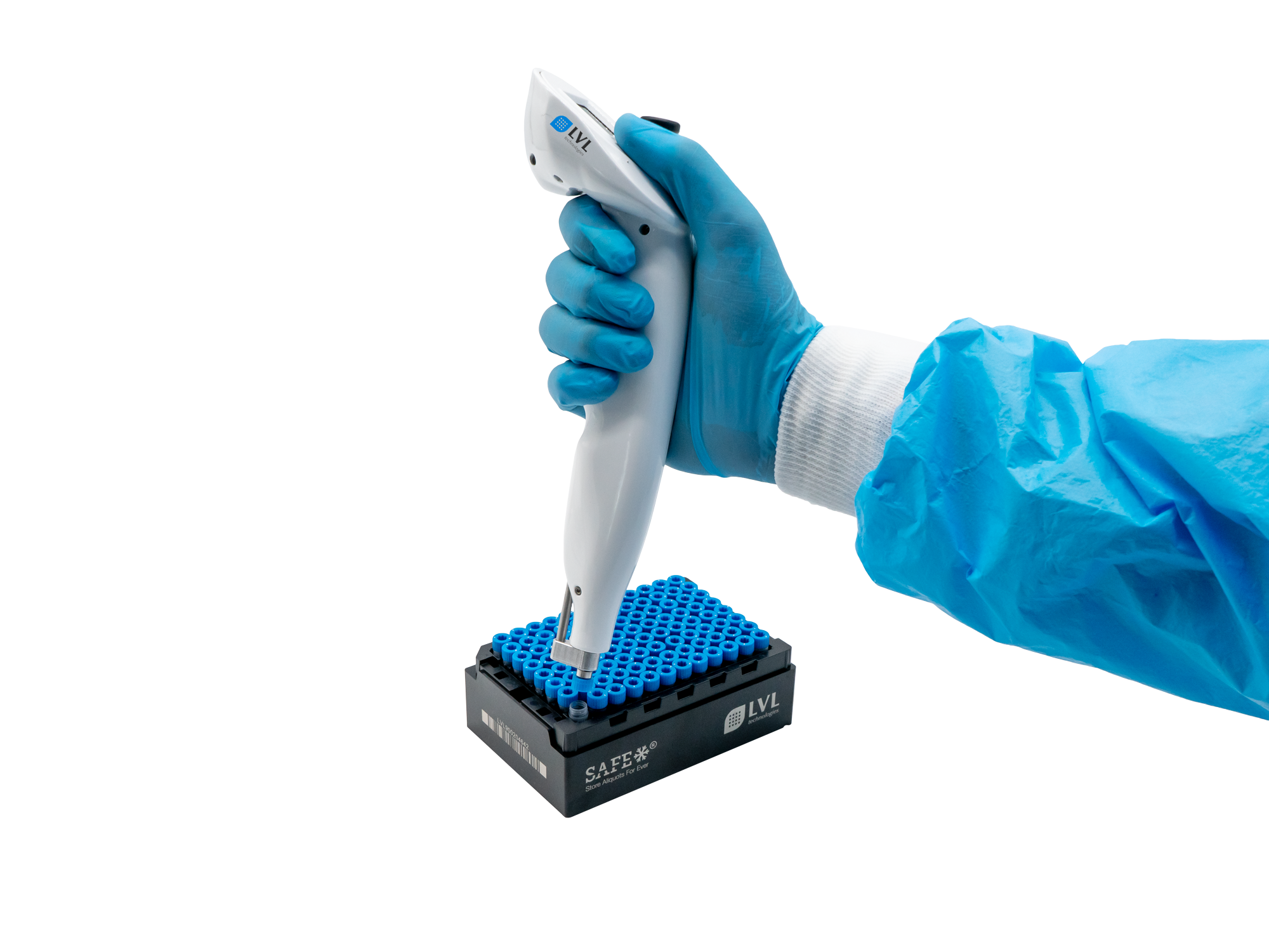 Genau für diesen Bedarf hat LVL einen vollautomatischen Tubenlaserbeschrifter entwickelt. Der TLM 864 kann SAFE®-Röhrchen in den Formaten SBS 96, SBS 48 und SBS 24 automatisch von zwei Seiten laserbeschriften und die Informationen in einer Datenbank mit dem 2D-Code verknüpfen, der zuvor während der Produktion aufgelasert wurde. Bis zu 500 Röhrchen pro Stunde können von neun SBS/ANSI-Positionen aus codiert werden.