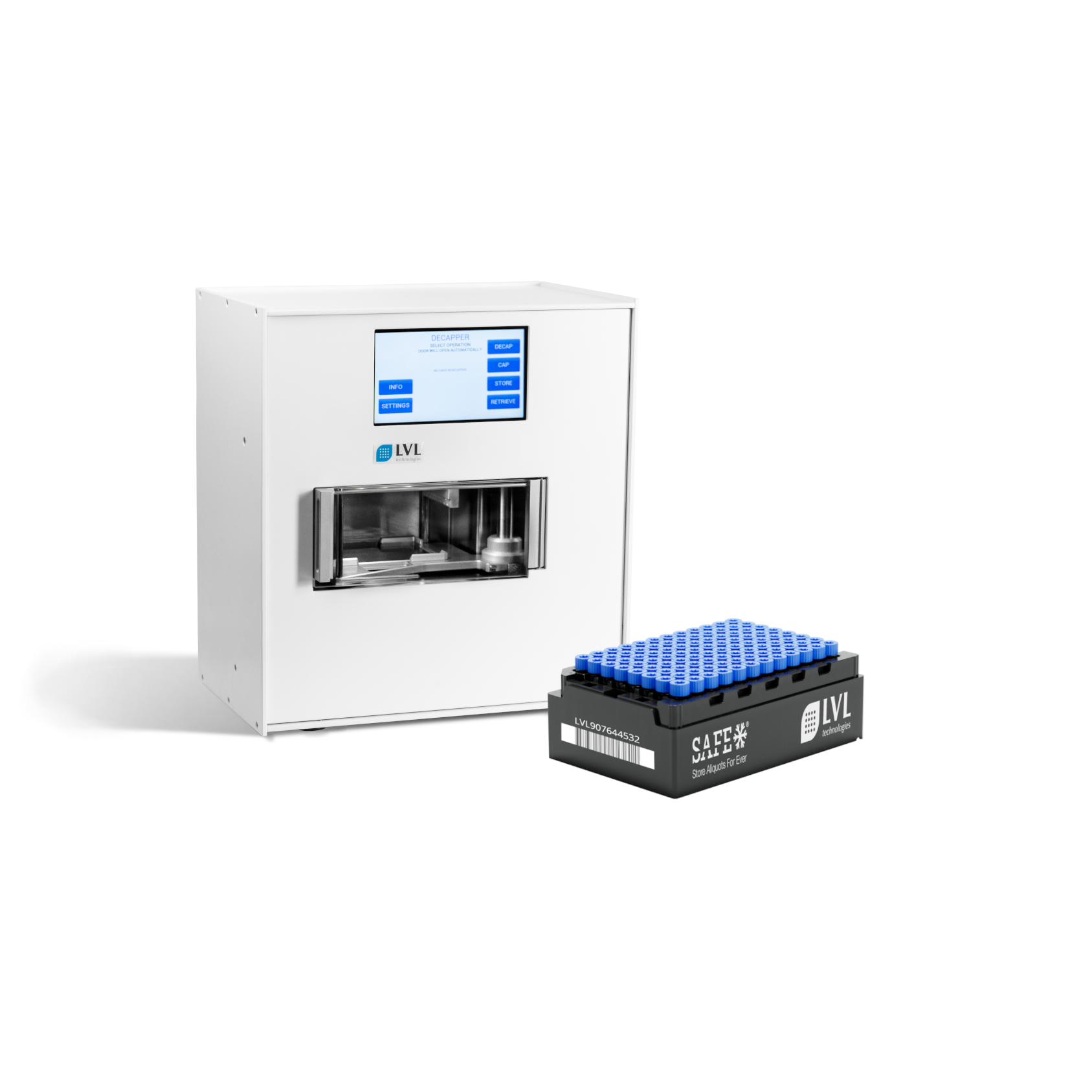 Der SAFE® CAP 96 Kanal XT Version Capper/Decapper von LVL technologies bietet eine vollautomatisierte Lösung für das gleichzeitige Verschließen und Öffnen von bis zu 96 Röhrchenverschlüssen. Dieses Gerät ist ideal für Labore, die eine schnelle und zuverlässige Verarbeitung von Verschlüssen benötigen.