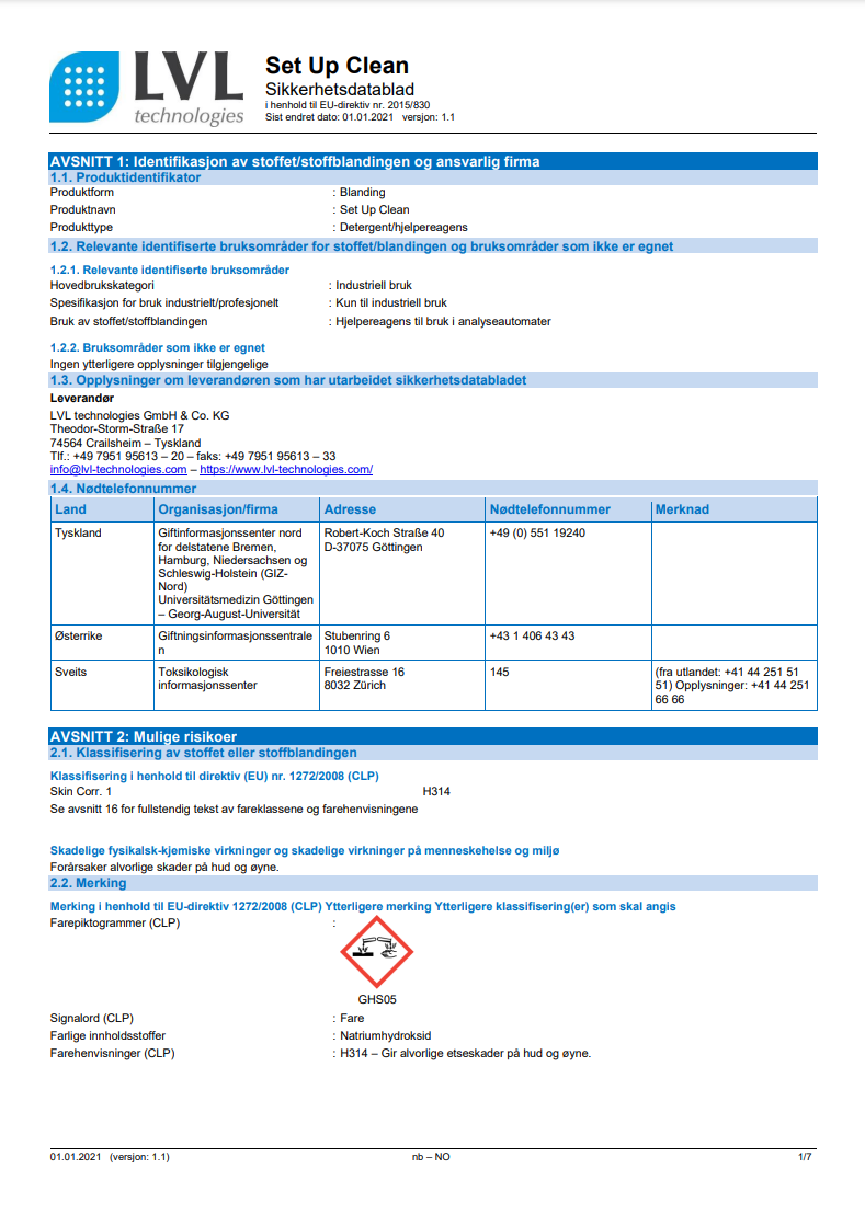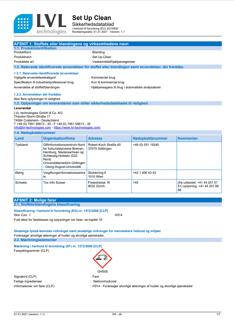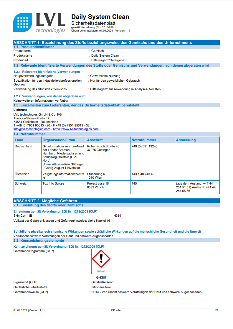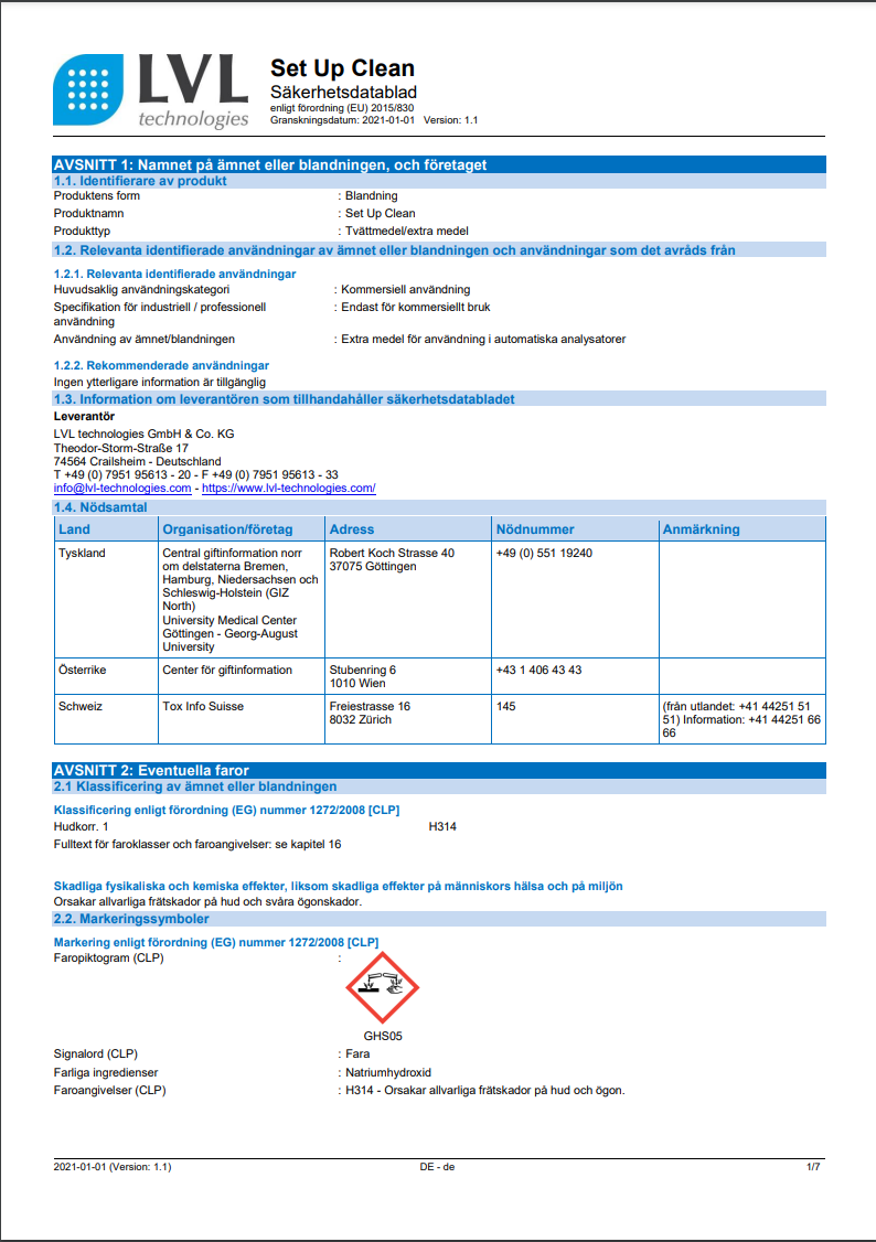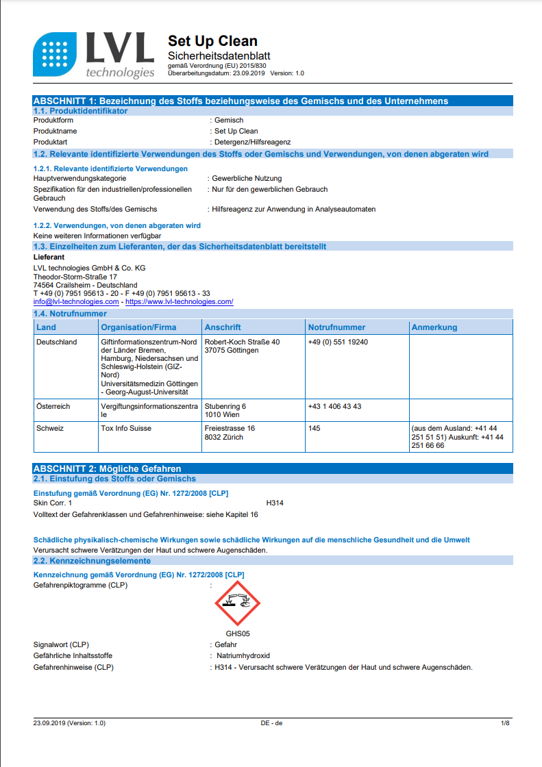 Sicherheitsdatenblätter Reinigungslösungen