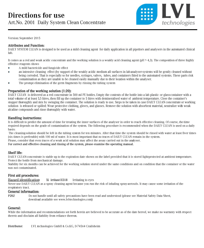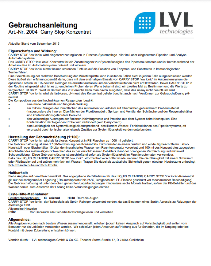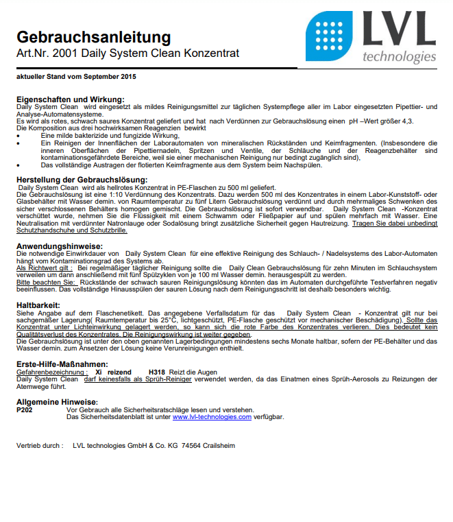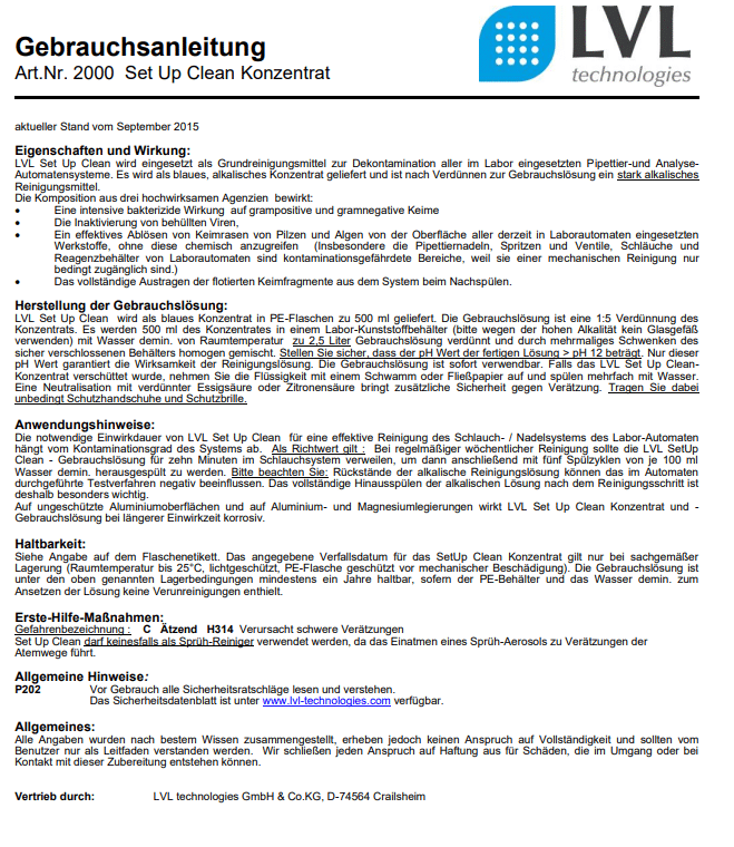 Gebrauchsanweisungen Reinigungslösungen
