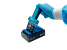 Zum Greifen und zum sicheren Umsortieren von 2D Tubes im Rack (6 Tubes auf einmal). Einzelne Röhrchenreihen können kinderleicht manuell aus dem Rack herausgenommen und umgesteckt werden. Das Gerät wird geschlossenen Spitzen in die Röhrchendeckel eingeführt. Zum Festhalten der Röhrchen muss lediglich der Griff mit leichtem Kraftbedarf zusammengedrückt werden und schon können die Röhrchen zum Prozessieren in ein weiteres Rack umgesteckt werden. So können sie den Rest Ihrer wertvollen Proben sofort wieder zurück in den Gefrierschrank stellen und nur mit den benötigten Probenröhrchen arbeiten.