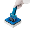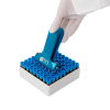 Zum Greifen und zum sicheren Umsortieren von 2D Tubes im Rack (8 Tubes auf einmal). Einzelne Röhrchenreihen können kinderleicht manuell aus dem Rack herausgenommen und umgesteckt werden. Das Gerät wird geschlossenen Spitzen in die Röhrchendeckel eingeführt. Zum Festhalten der Röhrchen muss lediglich der Griff mit leichtem Kraftbedarf zusammengedrückt werden und schon können die Röhrchen zum Prozessieren in ein weiteres Rack umgesteckt werden. So können sie den Rest Ihrer wertvollen Proben sofort wieder zurück in den Gefrierschrank stellen und nur mit den benötigten Probenröhrchen arbeiten.