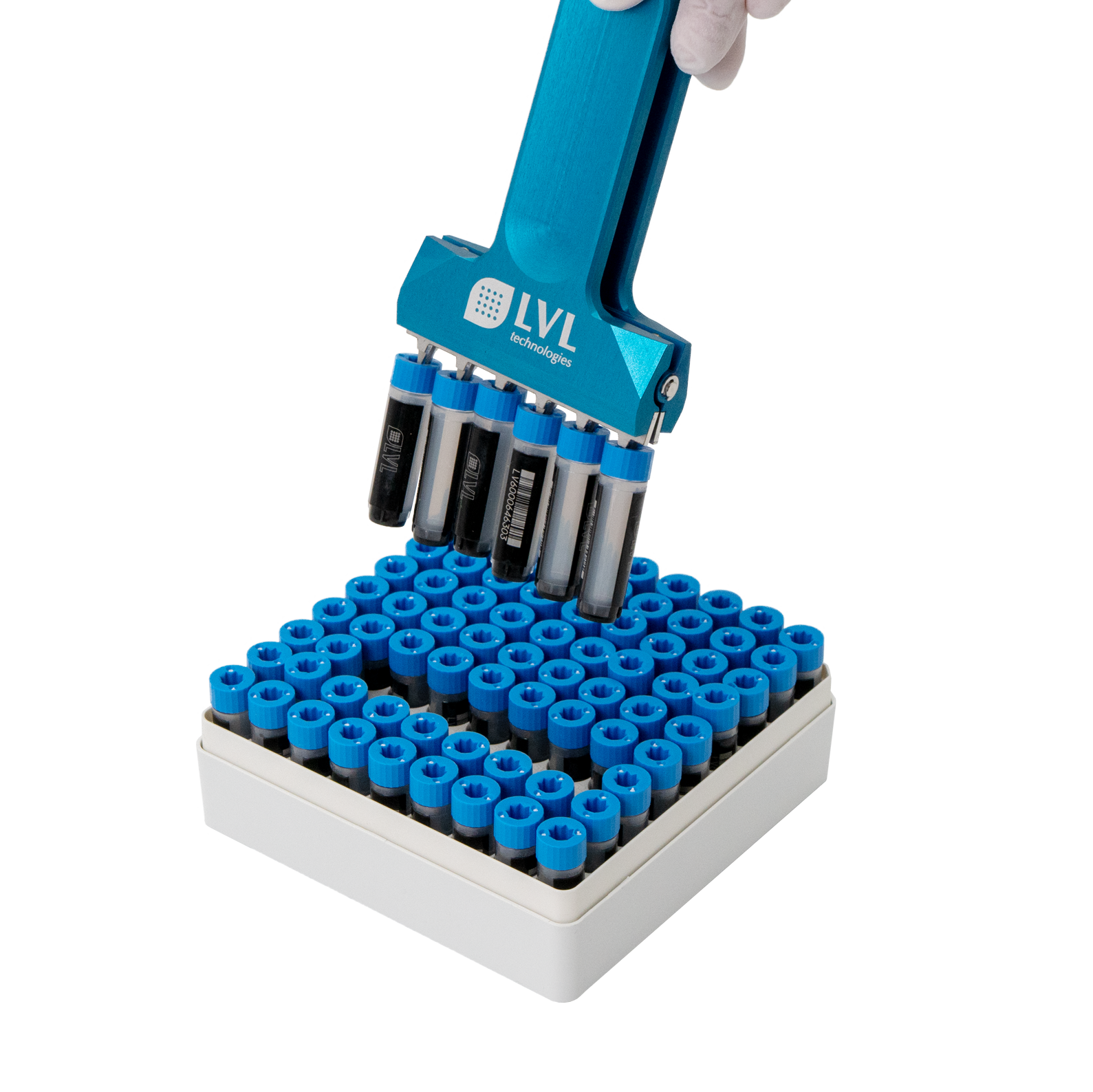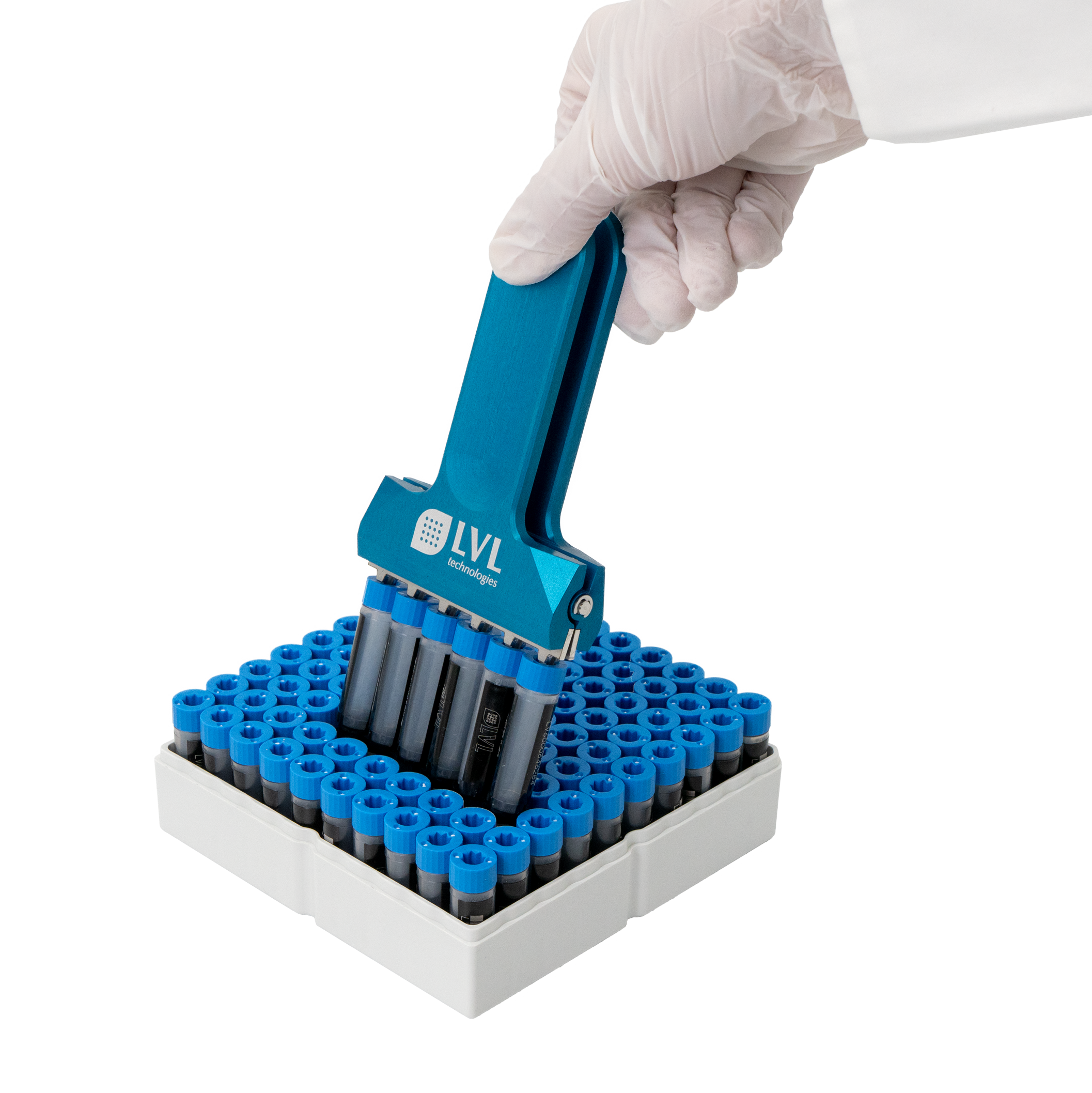 Der SAFE® Tube Reformator von LVL technologies ist die ideale Lösung für das flexible und sichere Umsortieren von 2D Tubes im Rack. Dieses innovative Gerät ermöglicht das einfache Herausnehmen und Umstecken einzelner Röhrchenreihen, was die Handhabung und Prozessierung erheblich vereinfacht. Mit geschlossenen Spitzen wird das Gerät in die Röhrchendeckel eingeführt, und durch leichtes Zusammendrücken des Griffs können die Röhrchen sicher gehalten und in ein anderes Rack umgesteckt werden. So können Sie Ihre wertvollen Proben sofort wieder in den Gefrierschrank stellen und nur mit den benötigten Probenröhrchen arbeiten.