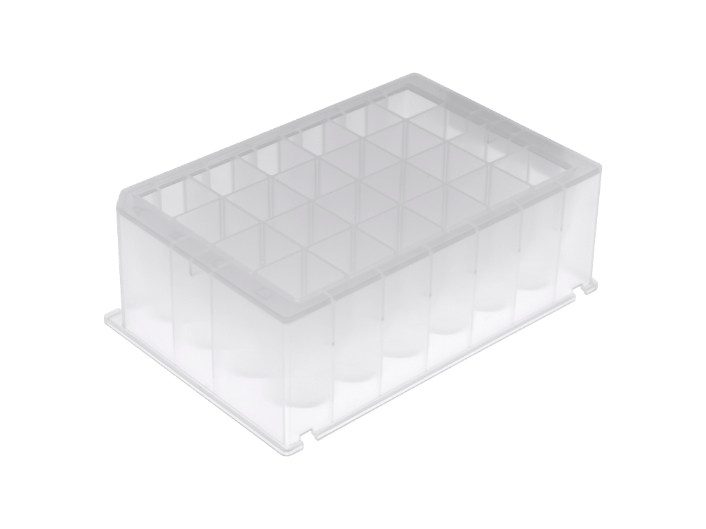- Die 8×6 Wells sind mit alphanumerischem Code versehen. Sie sind bei 121°C, 20 Min autoklavierbar und temperaturbeständig bis -80°C