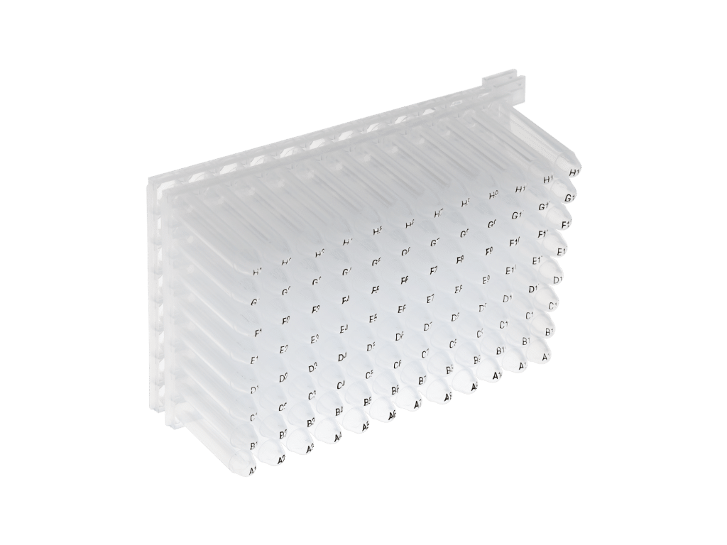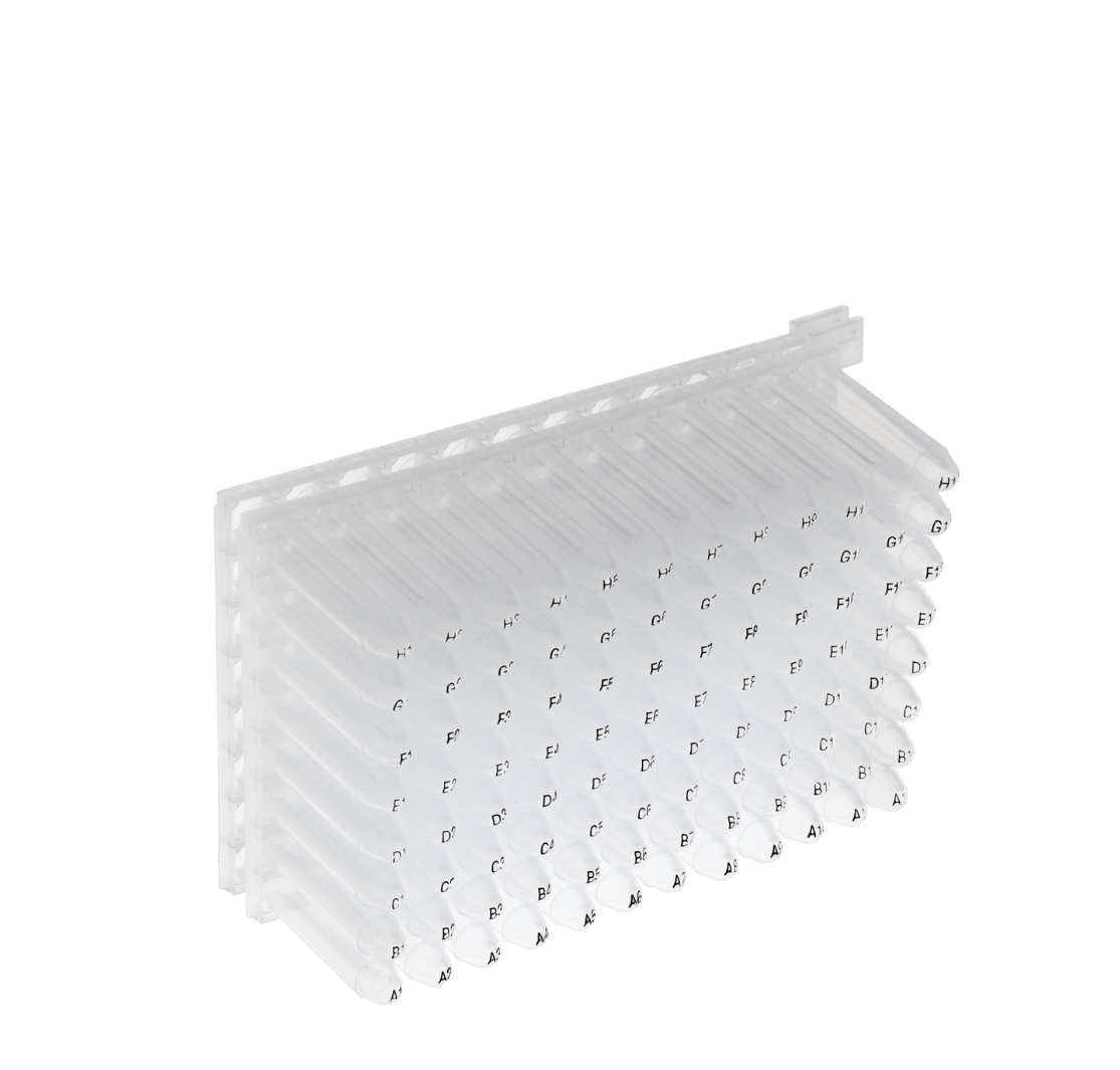 - Mit codierten und einzeln entnehmbaren Röhrchen (A1-H12)