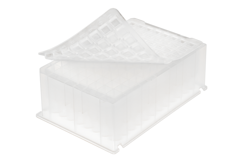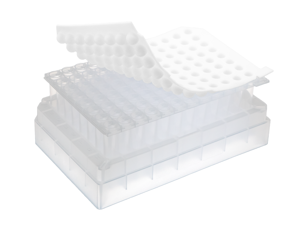 LVL technologies bietet eine breite Palette an hochwertigen Verschlusssystemen für Deep Well Platten und Röhrchenracks. Unsere Lösungen umfassen 8er Deckelstreifen, 96er Deckelmatten sowie spezielle Verschlüsse für Square und Round Well Platten aus TPE und EVA. Diese Verschlusssysteme sind temperaturbeständig bis -80°C und eignen sich ideal für die sichere Lagerung und Handhabung Ihrer Proben. Die Verschlüsse sind durchstechbar für die Probenentnahme und Zugabe, und bieten eine luftdichte Versiegelung.
