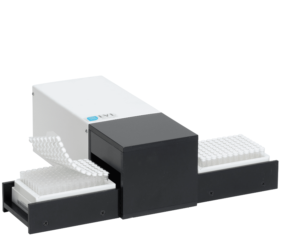 Genau für diesen Bedarf hat LVL einen vollautomatischen Tubenlaserbeschrifter entwickelt. Der TLM 864 kann SAFE®-Röhrchen in den Formaten SBS 96, SBS 48 und SBS 24 automatisch von zwei Seiten laserbeschriften und die Informationen in einer Datenbank mit dem 2D-Code verknüpfen, der zuvor während der Produktion aufgelasert wurde. Bis zu 500 Röhrchen pro Stunde können von neun SBS/ANSI-Positionen aus codiert werden.