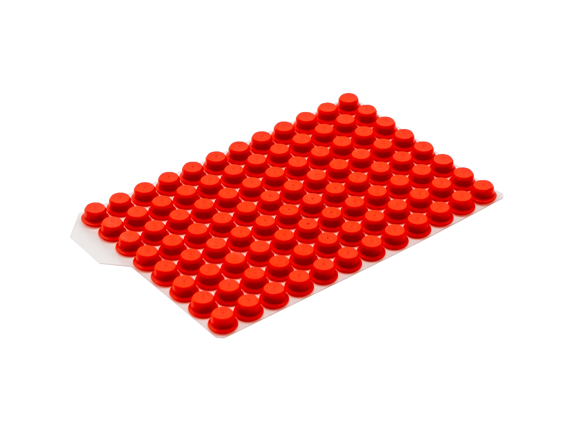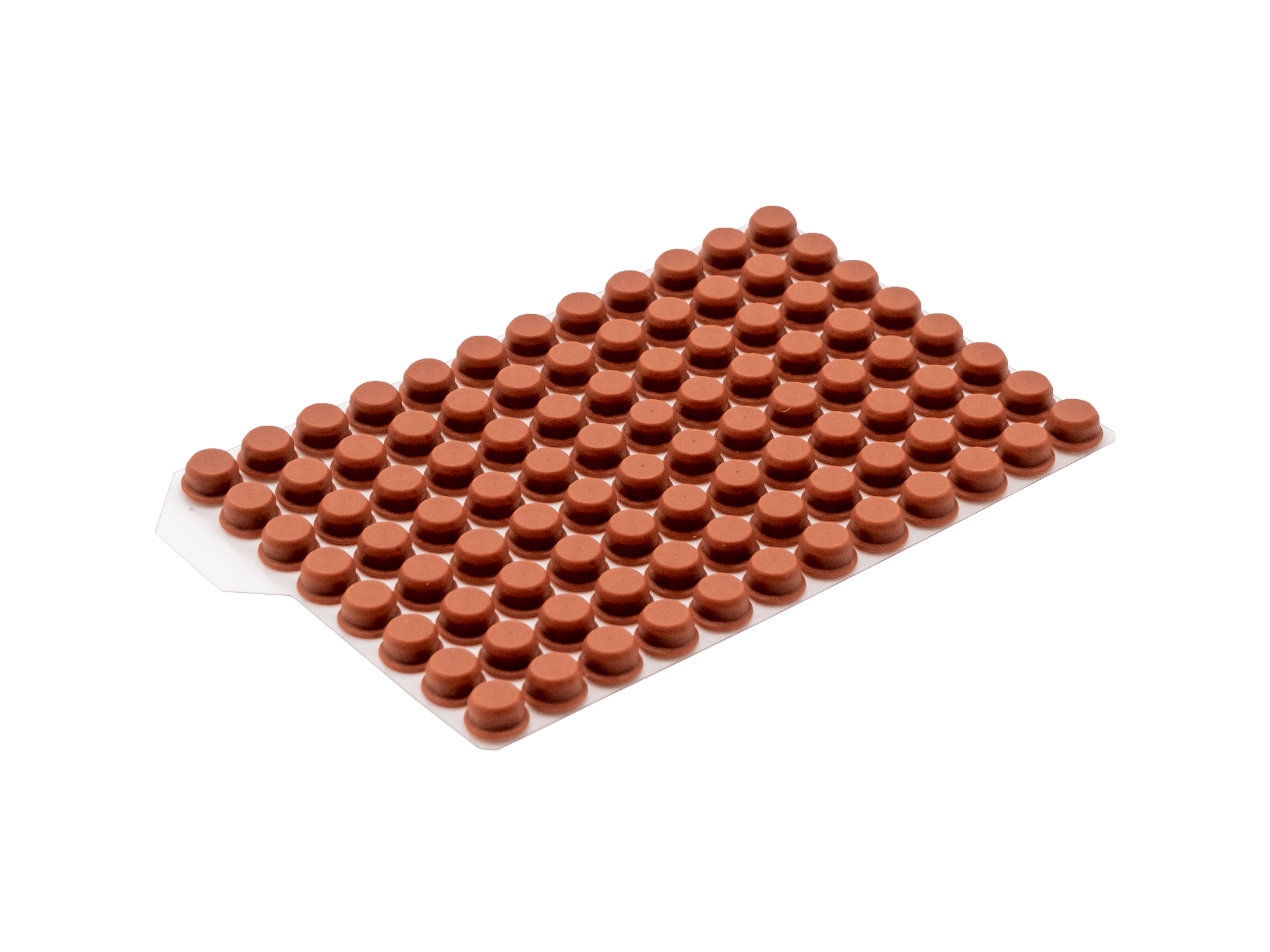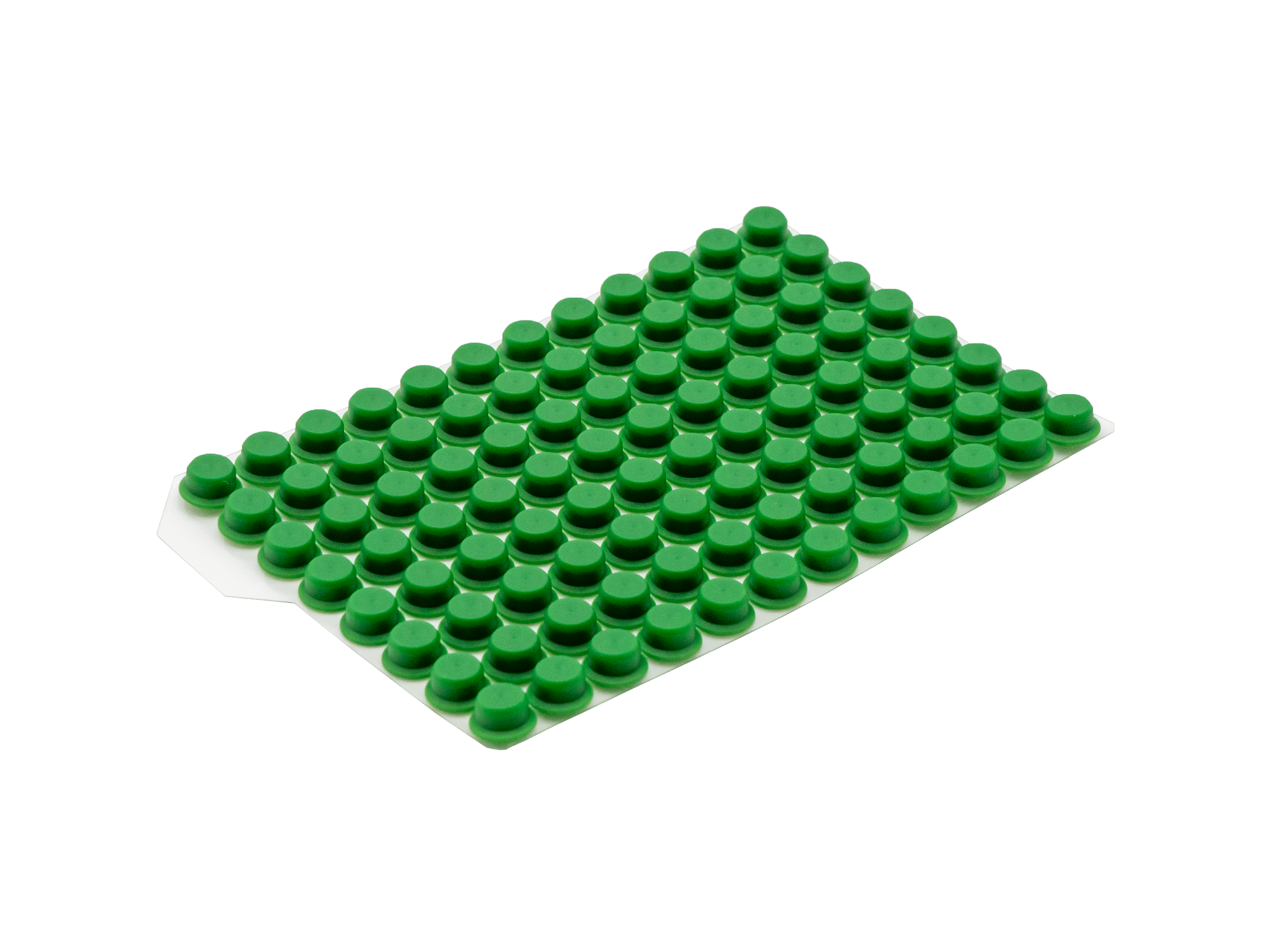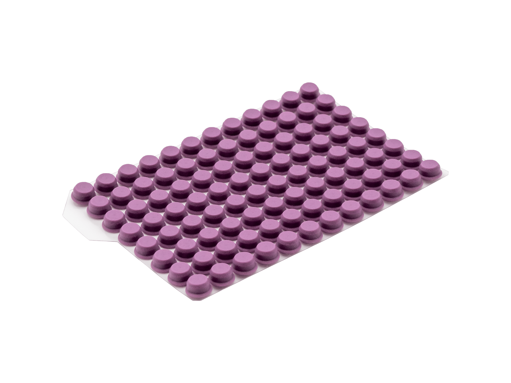 Materialien und Eigenschaften: Die Push Caps bestehen aus Thermoplastischem Elastomer (TPE) und bieten eine einfache Handhabung. Durch einmaliges Eindrücken der Matte können gleichzeitig 96 Röhrchen einzeln verschlossen werden. Die Push Caps sind auch als 8er und 12er Streifen erhältlich.