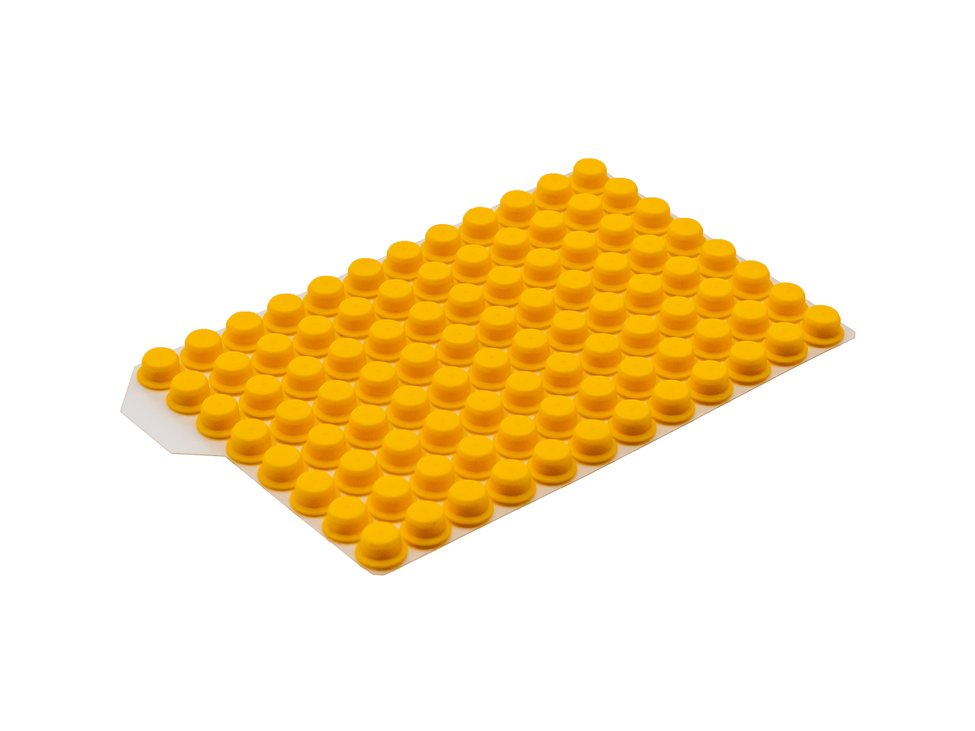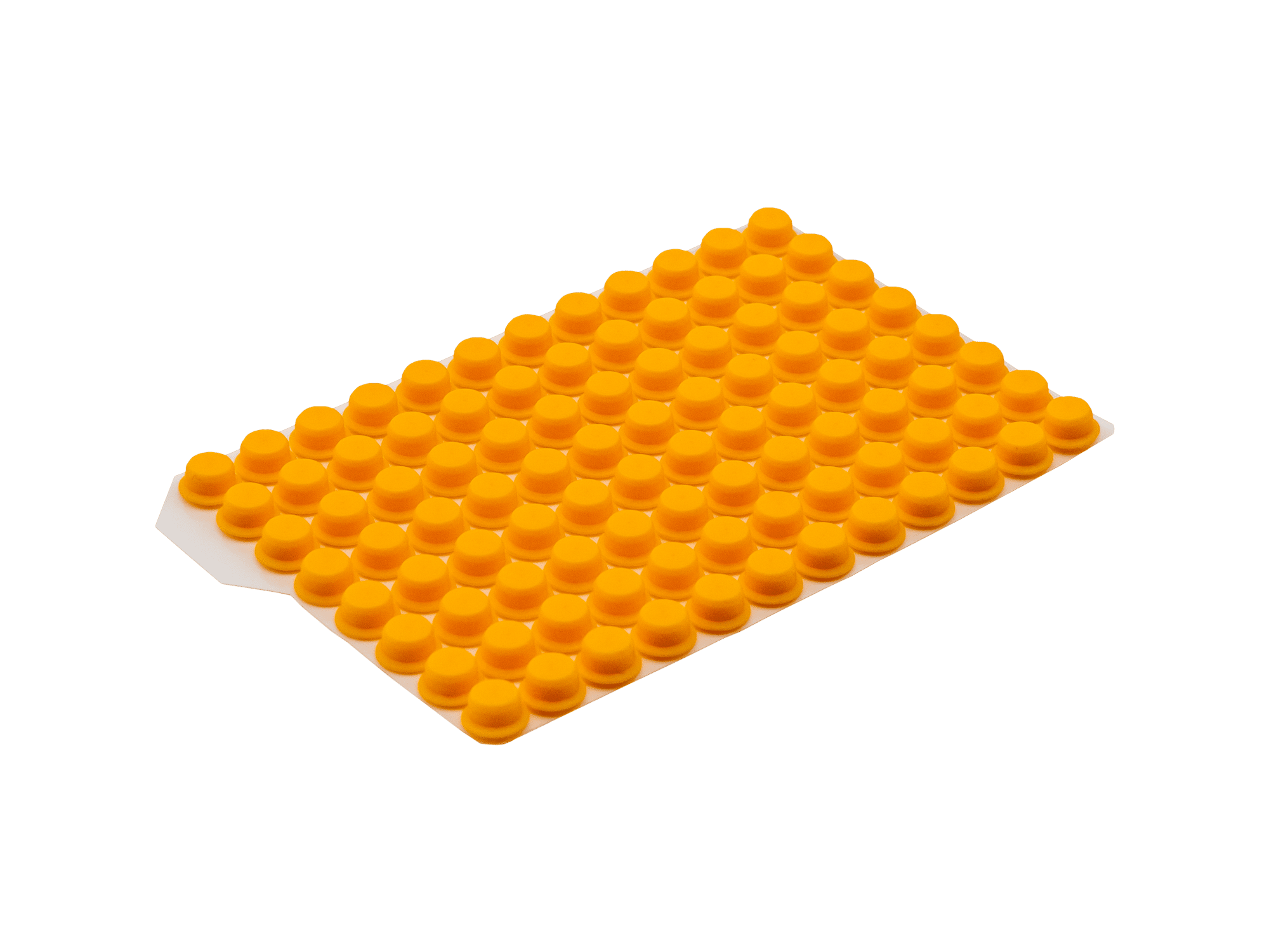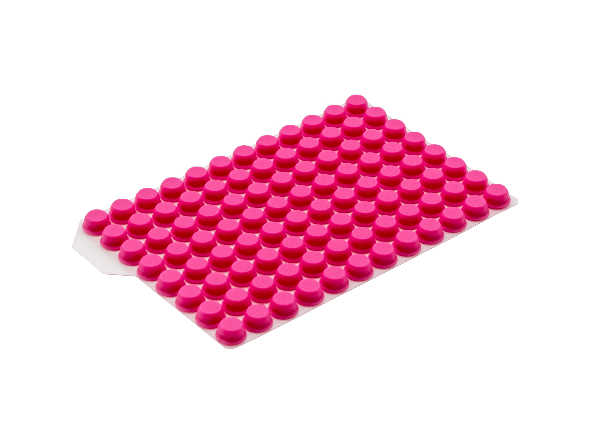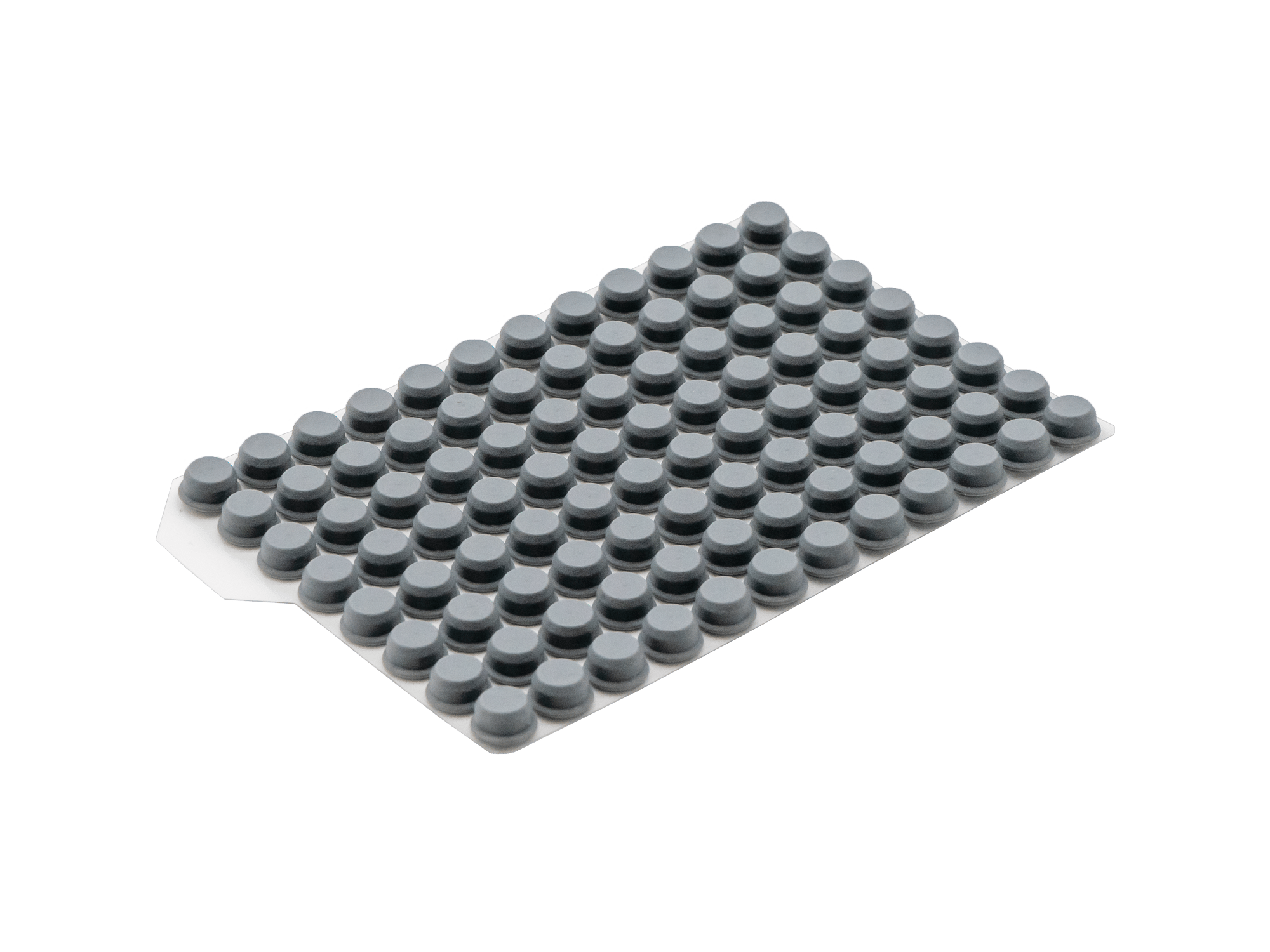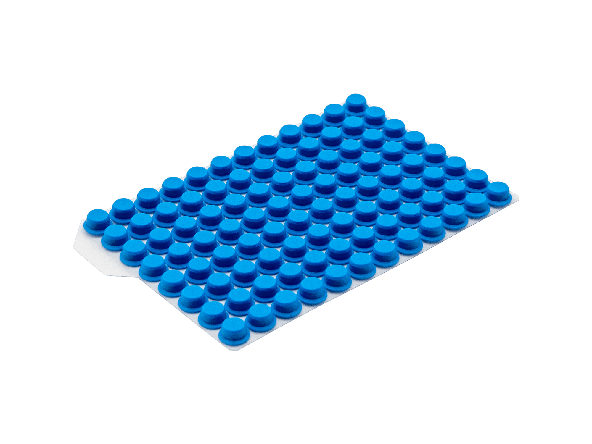 Materialien und Eigenschaften: Die Push Caps bestehen aus Thermoplastischem Elastomer (TPE) und bieten eine einfache Handhabung. Durch einmaliges Eindrücken der Matte können gleichzeitig 96 Röhrchen einzeln verschlossen werden. Die Push Caps sind auch als 8er und 12er Streifen erhältlich.
